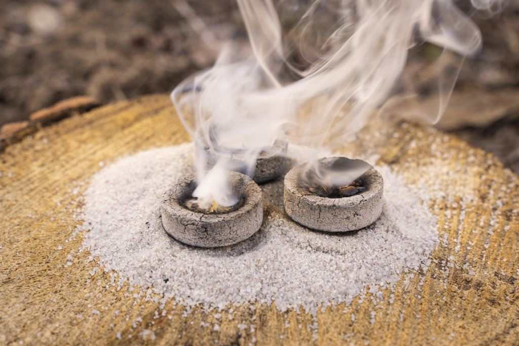 Ist die Mischung fertig hergestellt,erfolgt wieder die Verbindung mit der Bitte um Segnung und Energetisierung der Mischung zu Mutter Erde, den Pflanzendevas, dem jeweiligen Mondstand, allen 5 Elementen, dem heiligen Geist (ist für die Manifestation zuständig), der geistigen Welt und dem jeweiligen Elemental der neuen Räuchermischung.