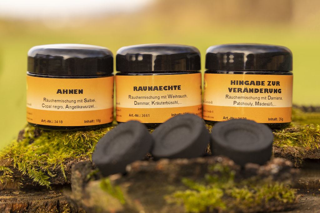 Dieses hochwertige Räucherset besteht aus 3 Räuchermischungen und 2 Rollen Räucherkohle.