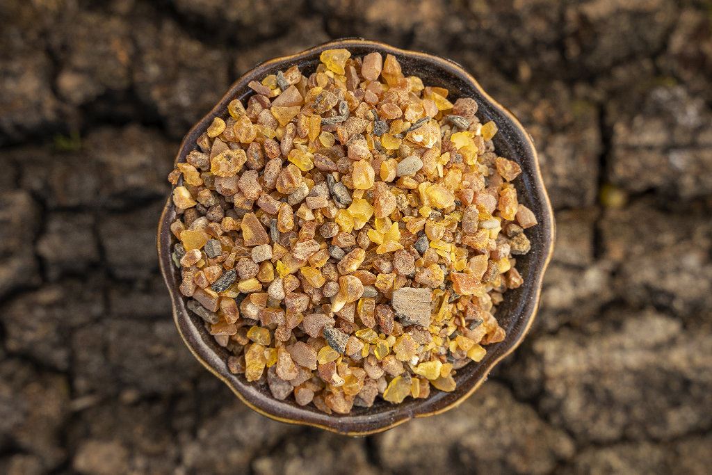 Handhabung: auf Räucherkohle, Stövchen oder Weihrauchbrenner verräuchern