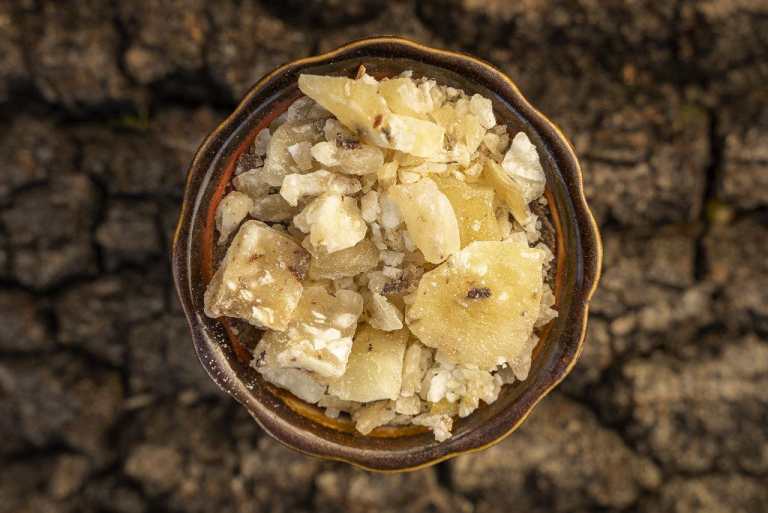 Handhabung: auf Räucherkohle, Stövchen oder Weihrauchbrenner verräuchern