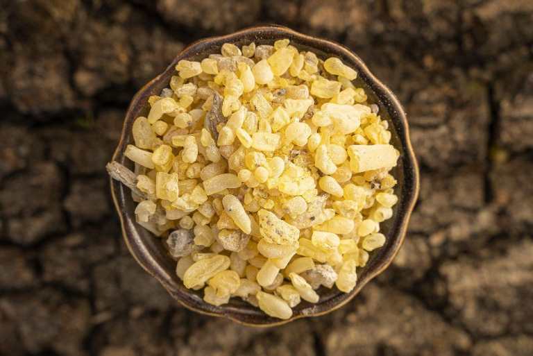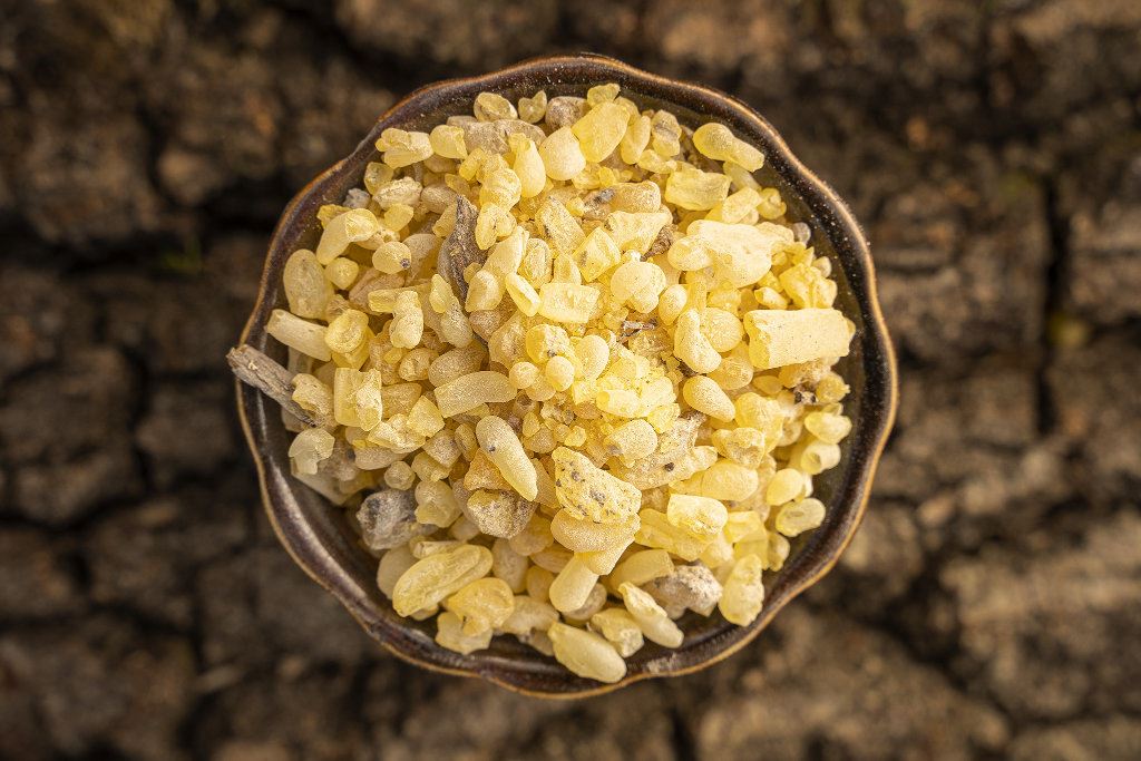 Handhabung: auf Räucherkohle, Stövchen oder Weihrauchbrenner verräuchern