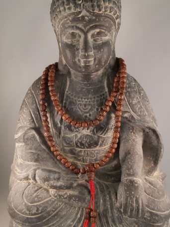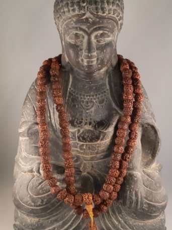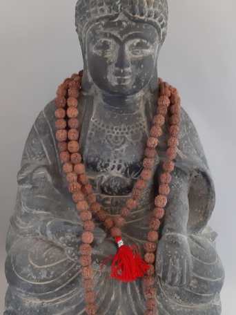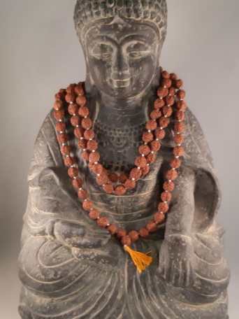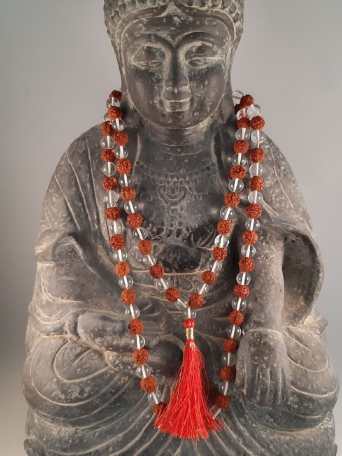 Verwendung: Die Mala wird in den meisten Fällen um den Hals getragen. Selten wird sie auch um die Hand gewickelt getragen