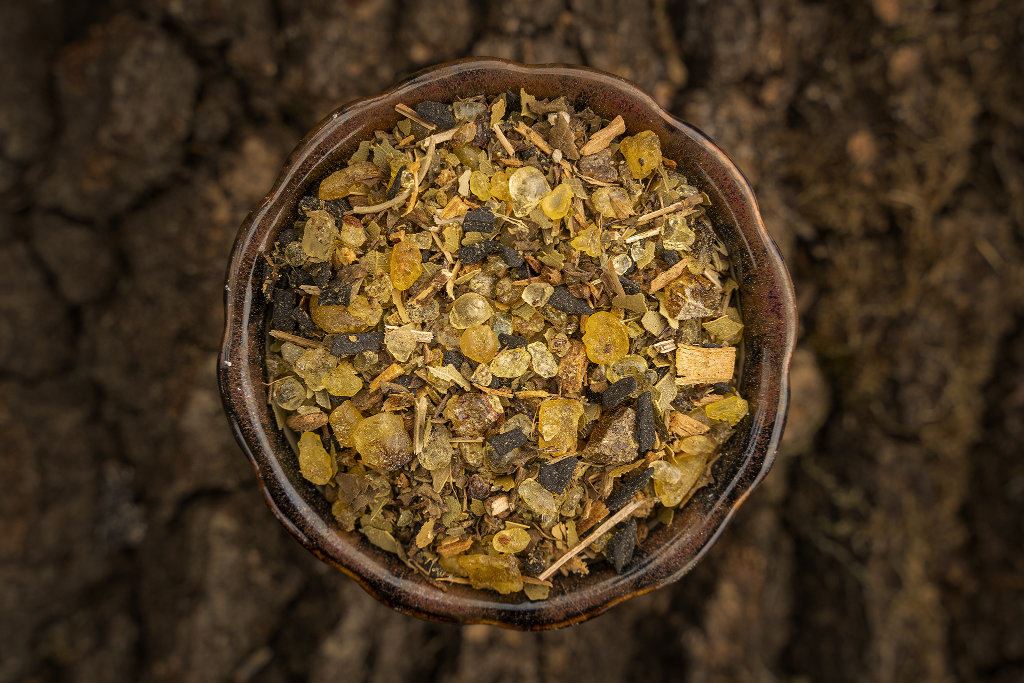• Bestandteile: Copal schwarz, Dammar weiß, Lorbeer, Sandelholz weiß, Styrax, Tulsi, Weihrauch Indien, Ysop