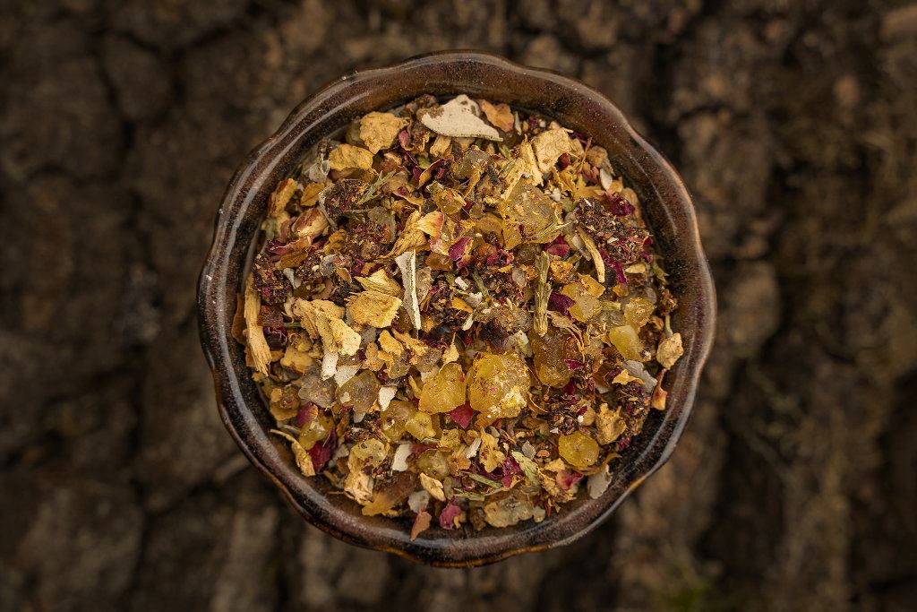 • Bestandteile: Baldrian, Galgantwurzel, Myrrhe, Perubalsam, Pinienharz, Rosenblüten, Thuja, Weihrauch Eritrea, White Sage