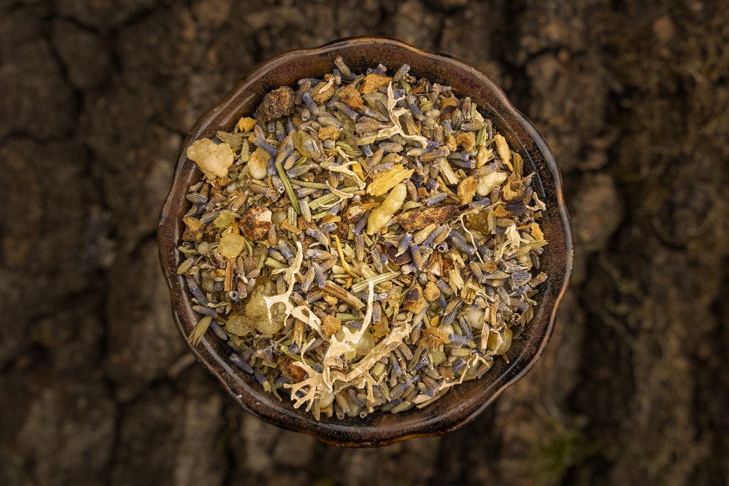 • Bestandteile: Eichenmoos, Lavendel, Opoponax, Palo Santo, Rosmarin, Thymian, Wacholderbeeren, Weihrauch, Maidy, Ysop