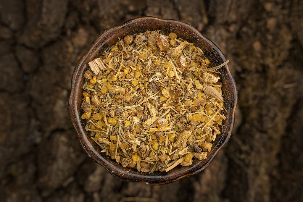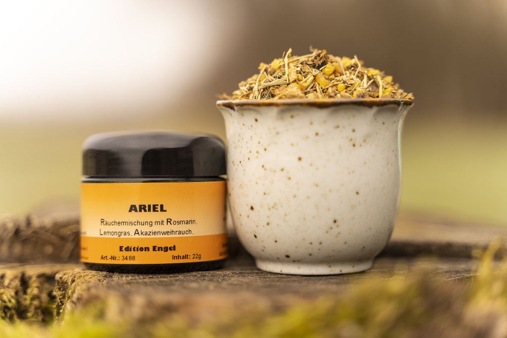Bestandteile: Angelikawurzel, Königskerzenblüten, Lemongras, Rosmarin, Vetiverwurzel, Wacholderbeeren, Weihrauch Akazie, Weihrauch Eritrea, Weihrauch gold