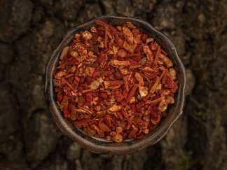 Bestandteile: Drachenblut, Ingwer, Muskatblüten, Sandelholz rot, Weihrauch rot, Weihrauch Somalia, Zedernholz, Zimtblüten, Zimtrinde