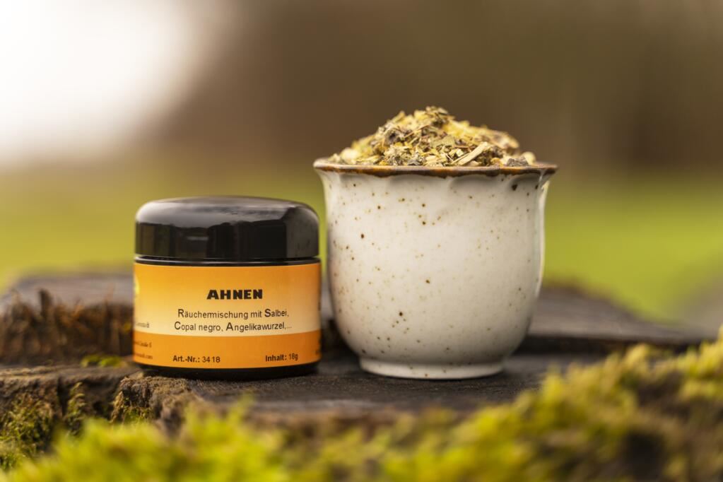 Bestandteile: Angelikawurzel, Beifuß, Copal negro, Eibennadeln, Kiefernharz, Mistelkraut, Salbei, Sandarak, Thuya, Wacholdernadeln
