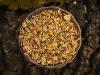 Bestandteile: Dammar weiß, Fluoritpulver, Holunderblüten, Iriswurzel, Jasminblüten, Kamille, Kampfer, Kardamom, Rosenblüten