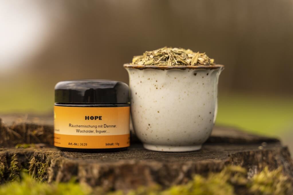 • Bestandteile: Dammar weiß, Desert Sage, Eisenkraut, Ingwer, Lemongras, Myrte, Pfefferminze, Sandarac, Wacholder