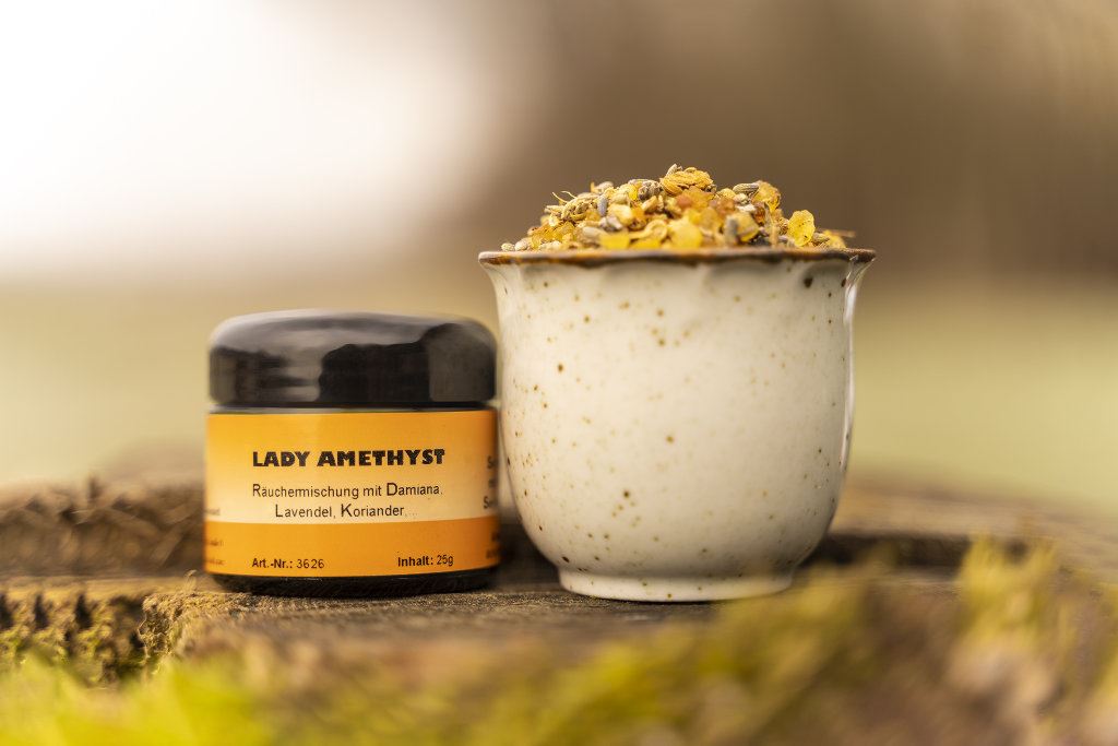• Bestandteile: Damiana, Galgantwurzel, Koriander, Lavendel, Myrrhe, Opoponax, Tonkabohne, Weihrauch Somalia
