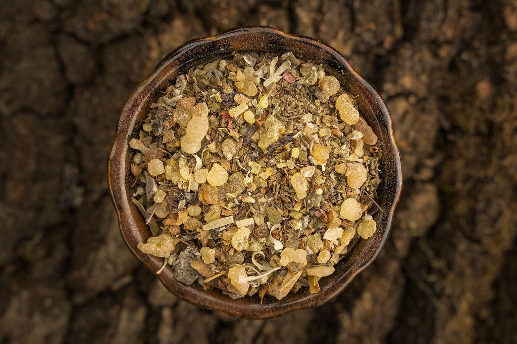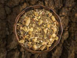 • Bestandteile: Copal negro, Hibiskusblüten, Myrrhe, Neemblätter, Tulsi, Weihrauch Indien, Wermutkraut